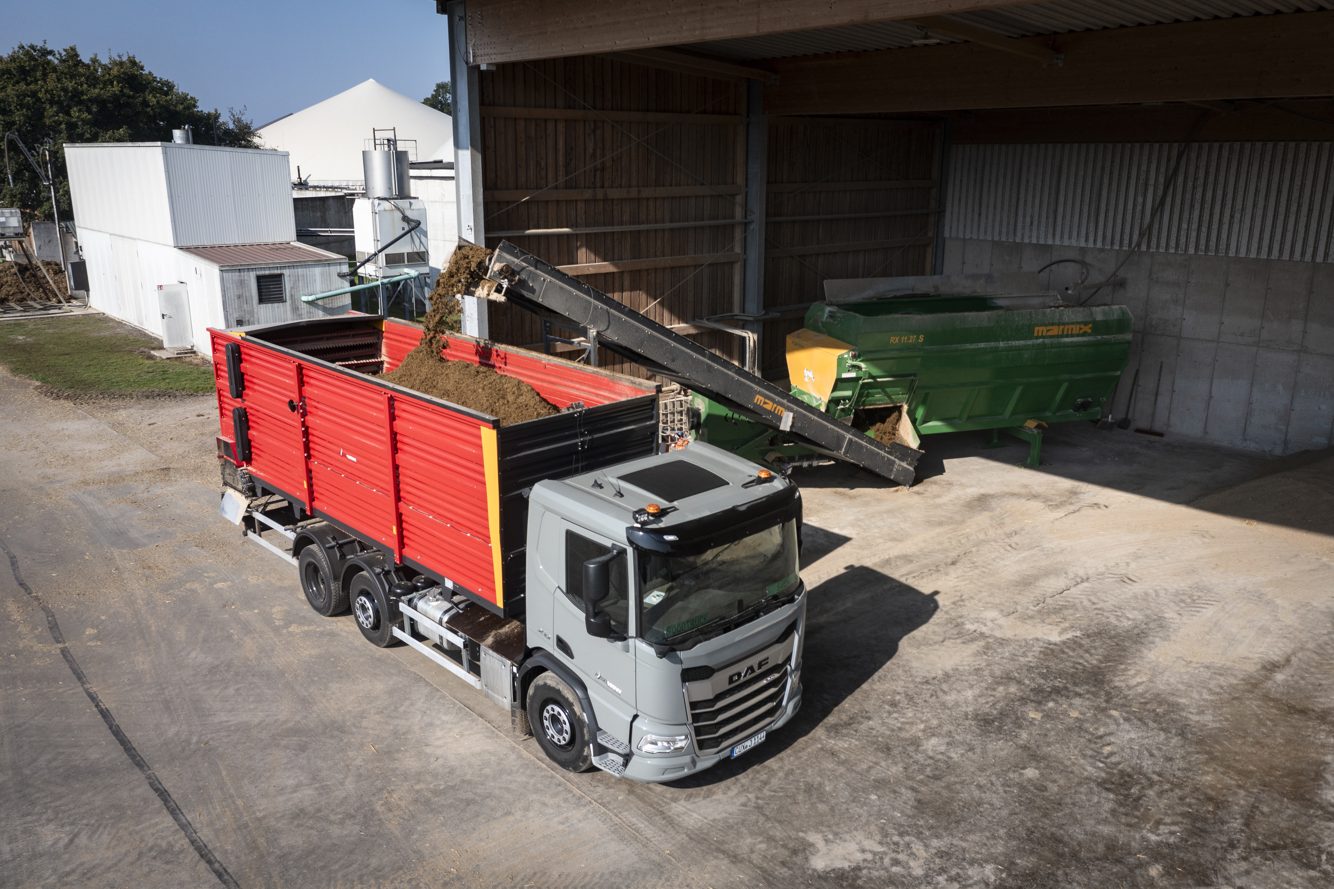 Seit 2024 wird das Futter in einem elektrisch angetriebenen Standmischer der Marke Marmix gemischt. Der Antrieb erfolgt über Strom aus der eigenen Biogasanlage, wodurch eine nachhaltige und kosteneffiziente Nutzung der vorhandenen Energie gewährleistet ist.