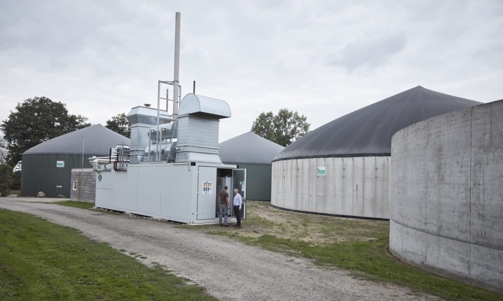 Mit unserer Biogasanlage wandeln wir Gülle, Mist und Futterreste aus dem Kuhstall in Strom und Wärme um. Den Strom speisen wir ins öffentliche Netz ein. Einen großen Teil der Wärme verwenden wir zum Beheizen der Wohnhäuser und von Stallbereichen. Der verbleibende Teil wird von unserem Düngerwerk genutzt, das wir 2018 als weiteren Schritt in Richtung effiziente Nährstoff- und Ressourcennutzung gebaut haben. Im Düngerwerk werden die Gärreste aus der Biogasanlage weiter aufbereitet und stehen dann als wertvolle Düngemittel beim Futteranbau für unsere Tiere und beim Anbau verschiedener Getreidearten zur Verfügung. So schließt sich unser Betriebskreislauf.