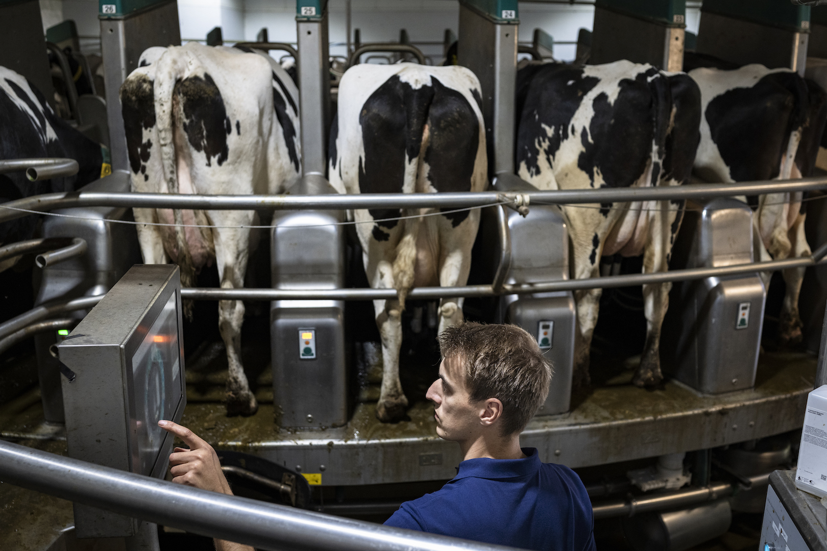 Der Stall für die jüngsten Kälber hat ein besonderes Klima: Er wird mit einer Fußbodenheizung gewärmt. Die Beheizung sorgt für eine niedrige Luftfeuchte und einen trockenen Boden in den dick mit Stroh eingestreuten Kälberboxen und ist eine wichtige Hygienemaßnahme. Vom ersten Tag an werden den Tieren Wasser und Kälbermüsli angeboten. Milch gibt es in den ersten drei Lebenswochen so viel, wie sie mögen. Eine weitere Besonderheit ist die Pärchenhaltung: Nach den ersten sieben Lebenstagen in Einzelversorgung ziehen die Kälber zu zweit zusammen. Diese noch junge Haltungsform ermöglicht den direkten Kontakt zu gleichaltrigen Tieren und das frühzeitige Erlernen von Sozialverhalten. Die Pärchenhaltung dauert bis zum Ende der dritten Lebenswoche.