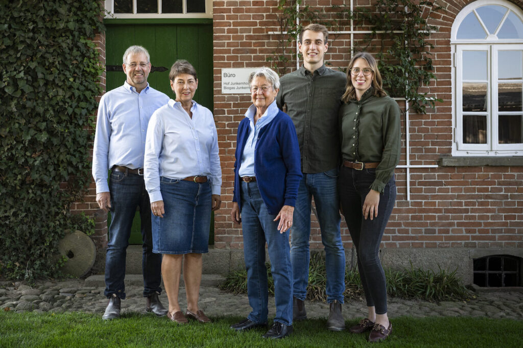 Als Grete und Wilhelm Heusmann 1929 nach Junkernhose kamen, war die Hofstelle von Donnern aus noch gut zu sehen. Heute liegen die Gebäude hinter einem dichten Baumgürtel verborgen. Unseren landwirtschaftlichen Betrieb weiterzuentwickeln und dabei auch der Natur ihren Raum zu geben hat bei uns Tradition.